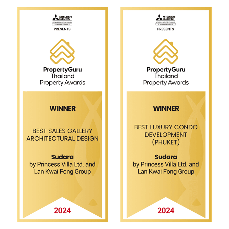 Sudara is honoured to receive multiple awards including PropertyGuru's Thailand Property Awards. This recognition comes after an independent panel of industry experts carefully evaluated the project's design, quality, service delivery, innovation, originality, and commitment to sustainability.